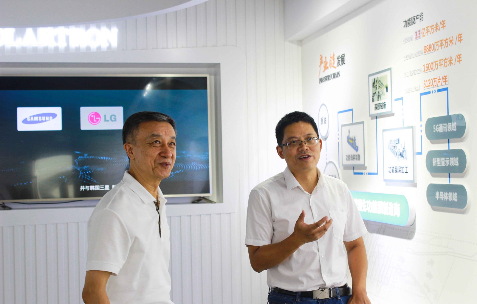 首先,副总裁周玉波带领各位领导参观了企业展厅,全面的介绍了企业的发展史与未来规划。令人关注的是,QY千亿国际科技在光学功能膜行业深耕十余年,从填补国内空白到国家单项冠军,完成了从0到1的跨越式成长,接下来QY千亿国际将从1到N,不断加强创新投入,致力于“十年十膜”。