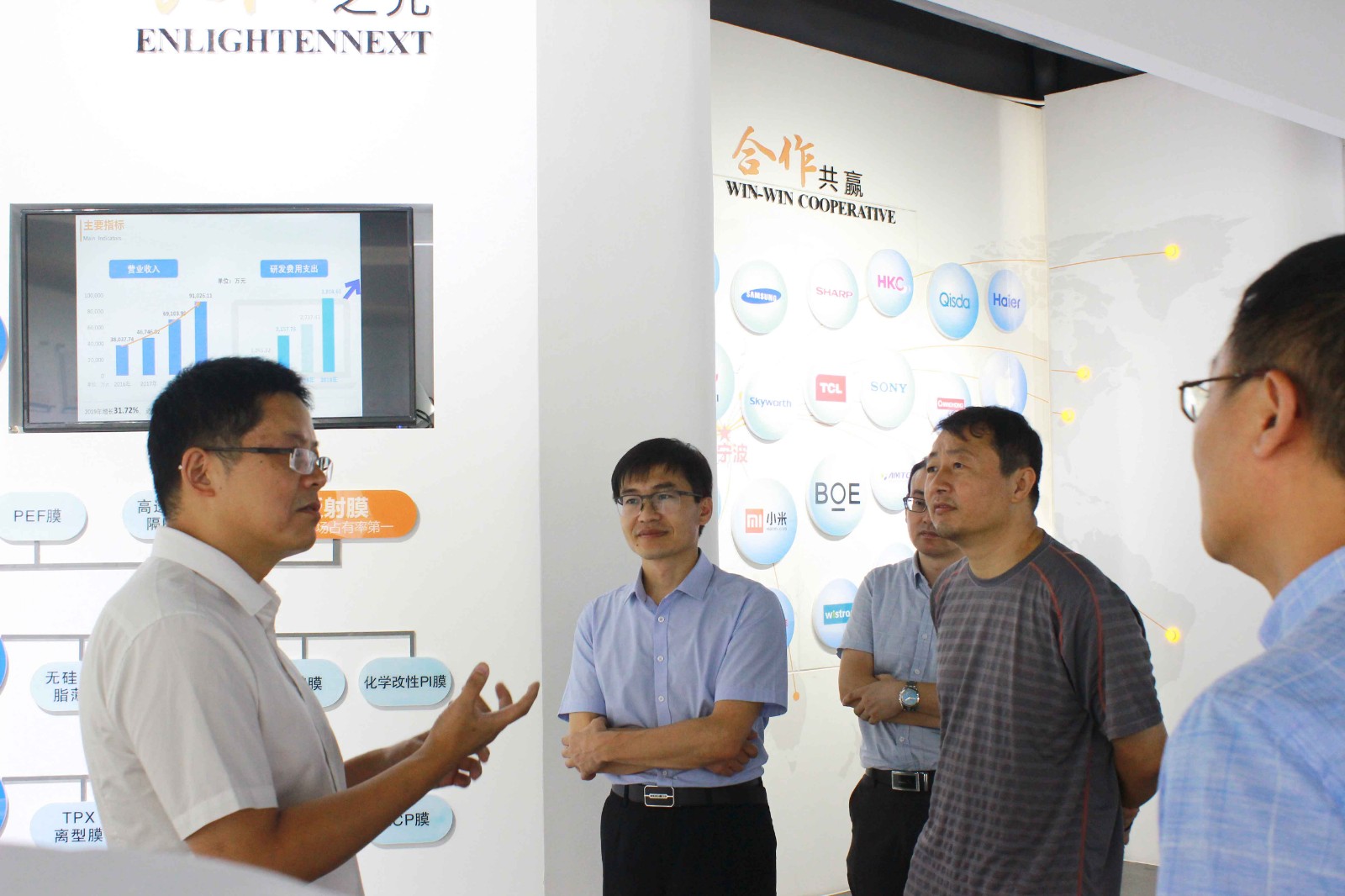 2020年8月13日,近30位宁波市领军和拔尖人才专家莅临宁波QY千亿国际科技股份有限公司参加尖端功能膜领域产学研合作交流分享会,宁波市人社局专技处刘建平副处长,QY千亿国际科技董事长金亚东博士、副总裁杨承翰博士、副总裁周玉波博士出席会议。